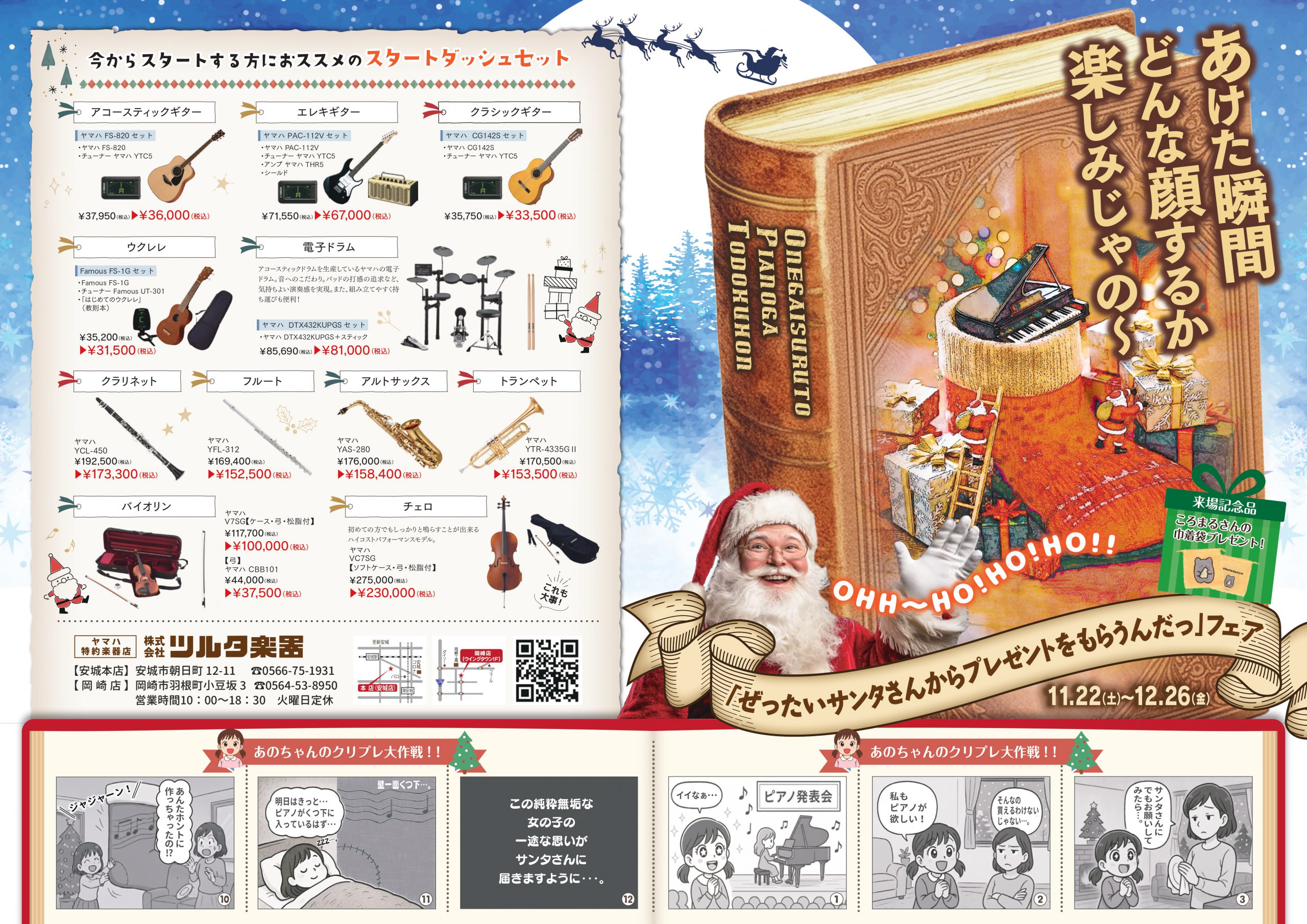 当楽器店では、お子様の願いを応援し、ご家族の音楽生活を豊かにするためのスペシャルフェアを、12月26日(金)まで開催いたします。